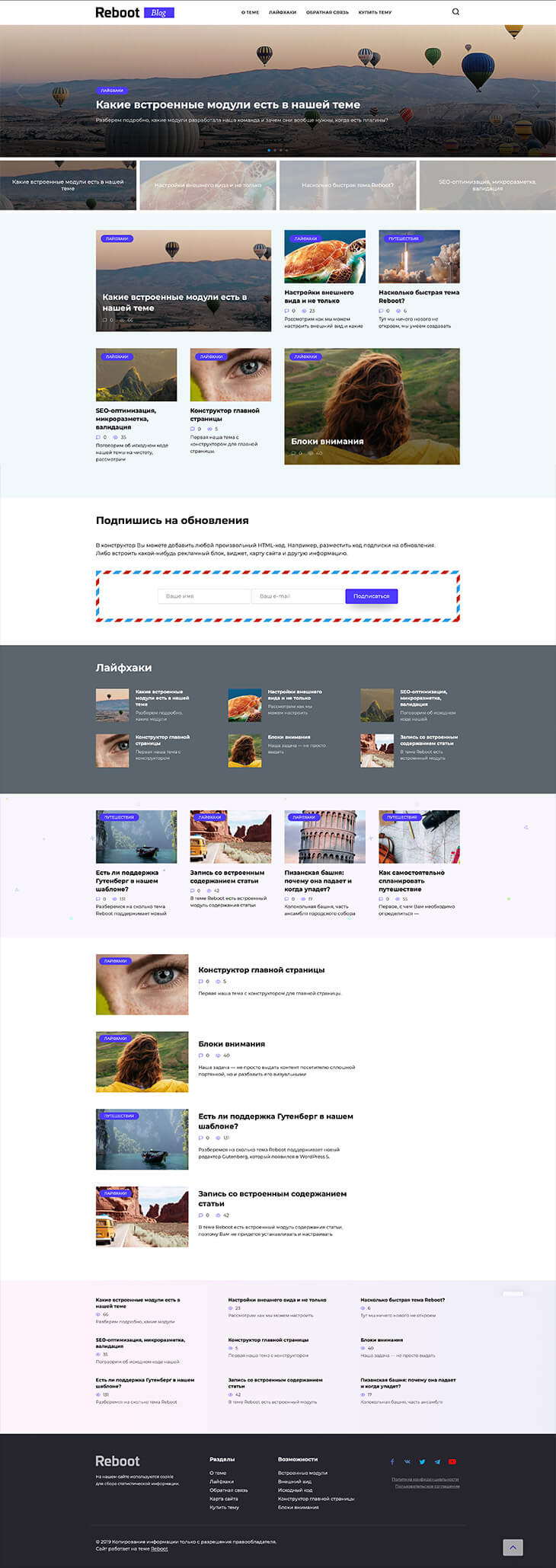 Первая наша тема с конструктором для главной страницы. Пример можно посмотреть на этом демо-сайте.